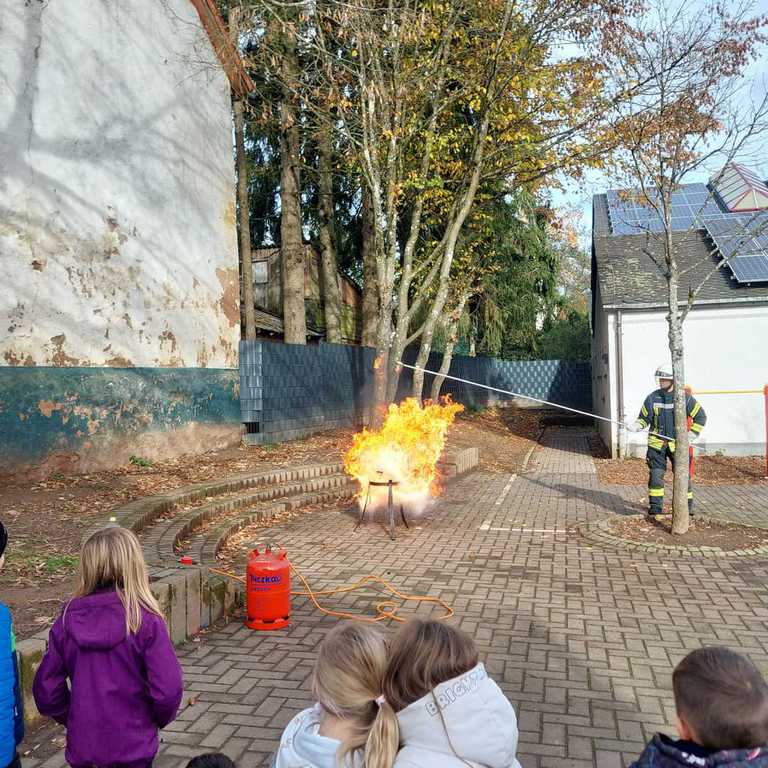 Im Anschluss an das Theaterstück, das von dem Förderverein der Grundschule finanziert wurde, durften die Kinder der Grundschule auf dem Schulhof noch mehr an verschiedenen Stationen der Feuerwehr Gusenburg lernen. So wurden Schläuche ausgerollt, Feuer gelöscht oder einer Fett-Explosion zugeschaut. Vielen Dank an Marco und Daniela Hares und Bernhard Weber für den Einsatz. Nur so kann es möglich sein, durch aktives Mitmachen die Kinder für die Alltagsgefahren zu sensibilisieren und nachhaltig etwas für das Thema „Brandschutzerziehung“ zu leisten.