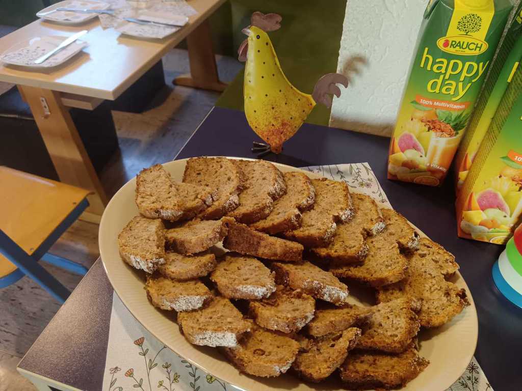 War das spannend zu sehen, was sich innerhalb von 6 Monaten getan hatte in unserem Schulgarten. Denn nach den Osterferien hatten die Kinder der jetzigen Klasse 3 kleine Kartoffeln in die Erde gesetzt. Damals waren es 2 kg. Und heute war Erntetag! Alle buddelten fleißig und das Ergebnis lässt sich sehen: 38kg leckere Kartoffeln kamen zusammen! Diese wurden dann zum Teil gekocht und gemeinsam gegessen. Dazu gab es selbst hergestellten Kräuterquark, Kräuterbutter und Gemüse-Sticks. Die restlichen Kartoffeln wurden stolz mit nach Hause genommen!