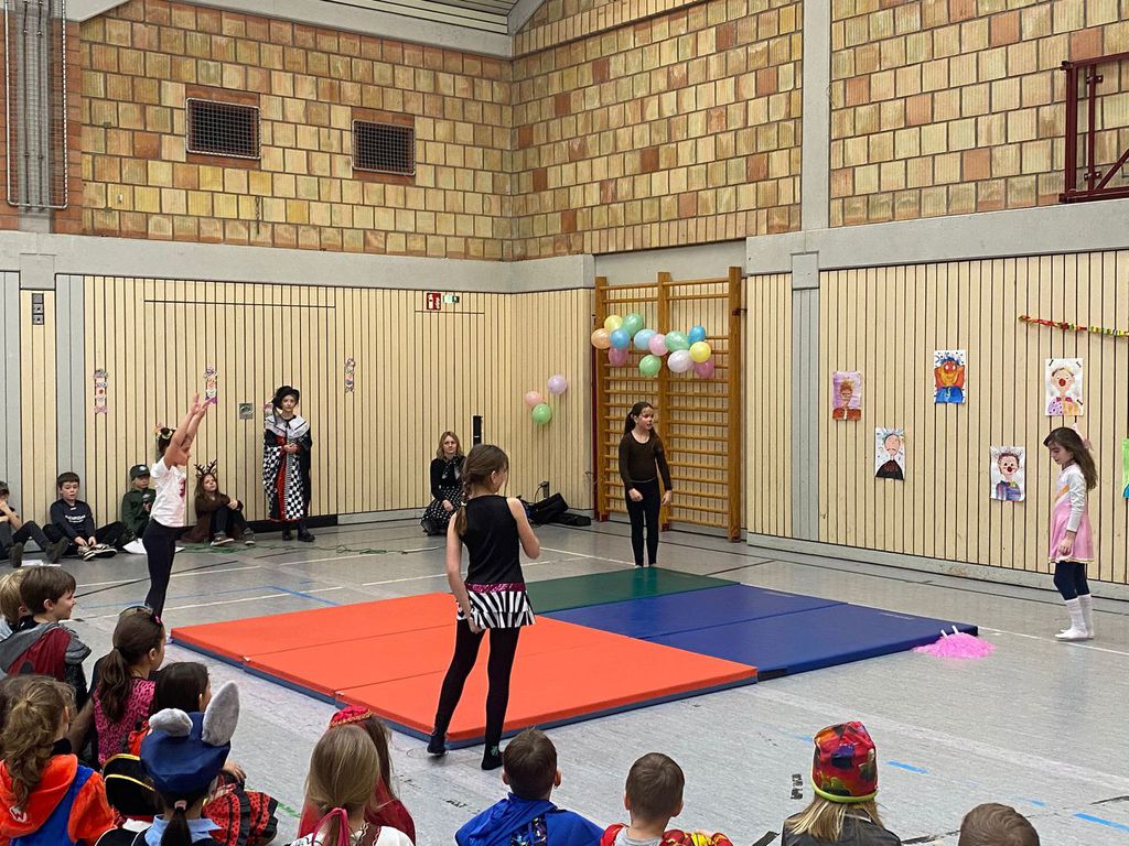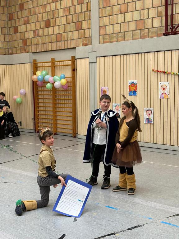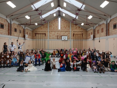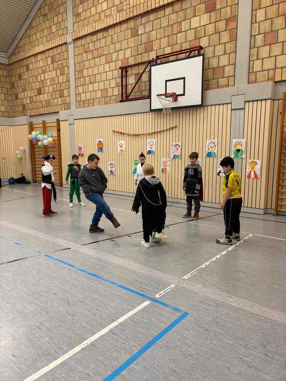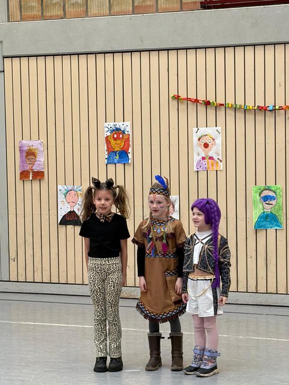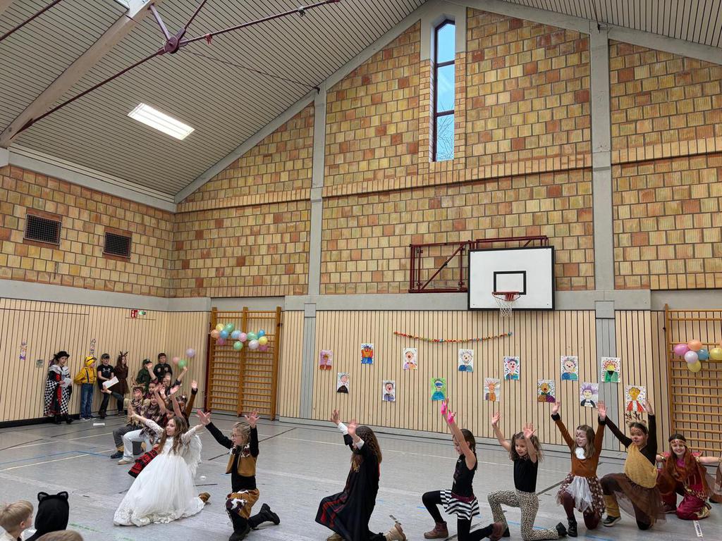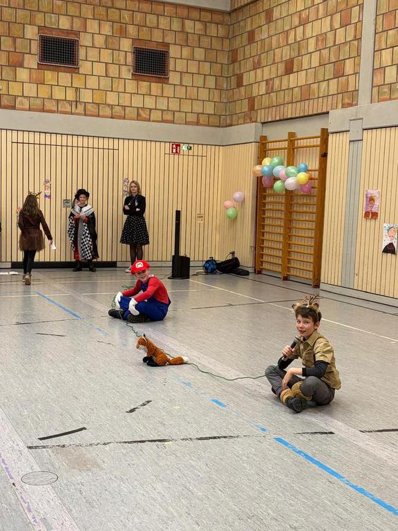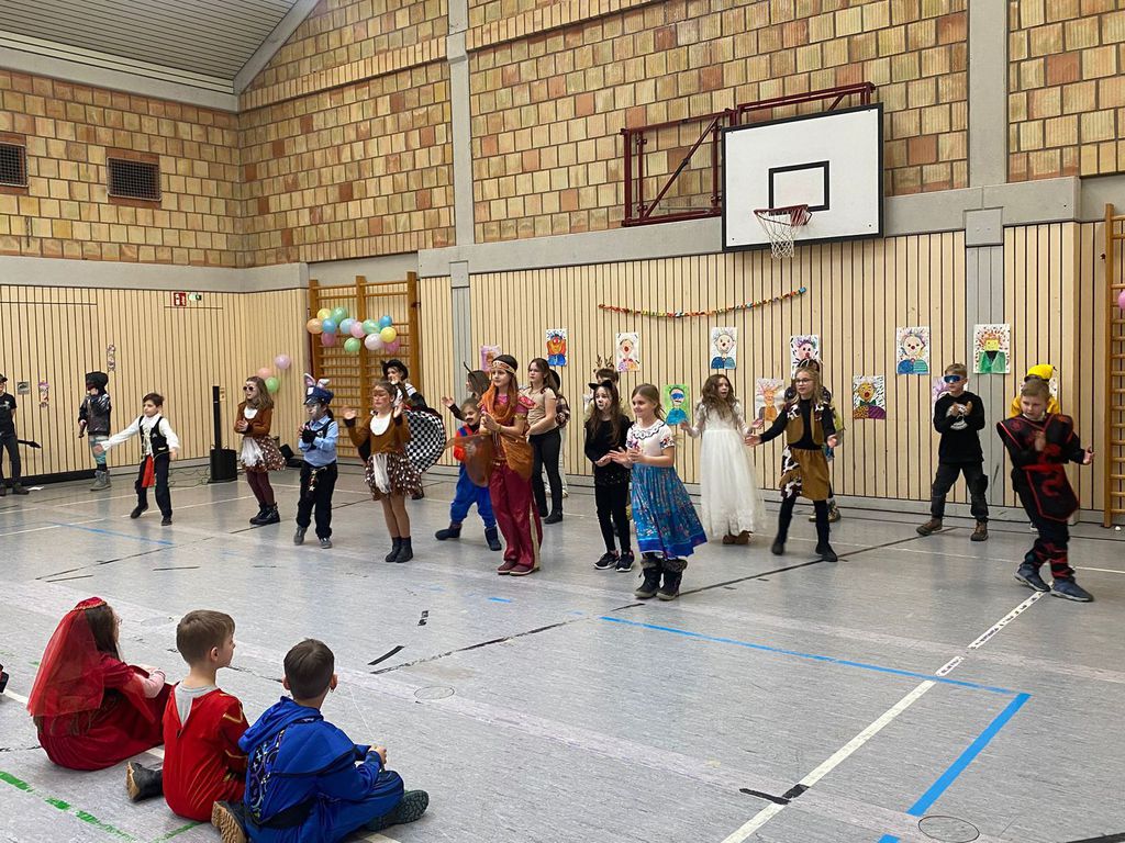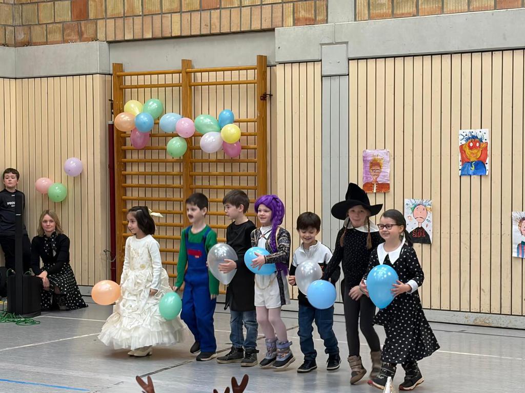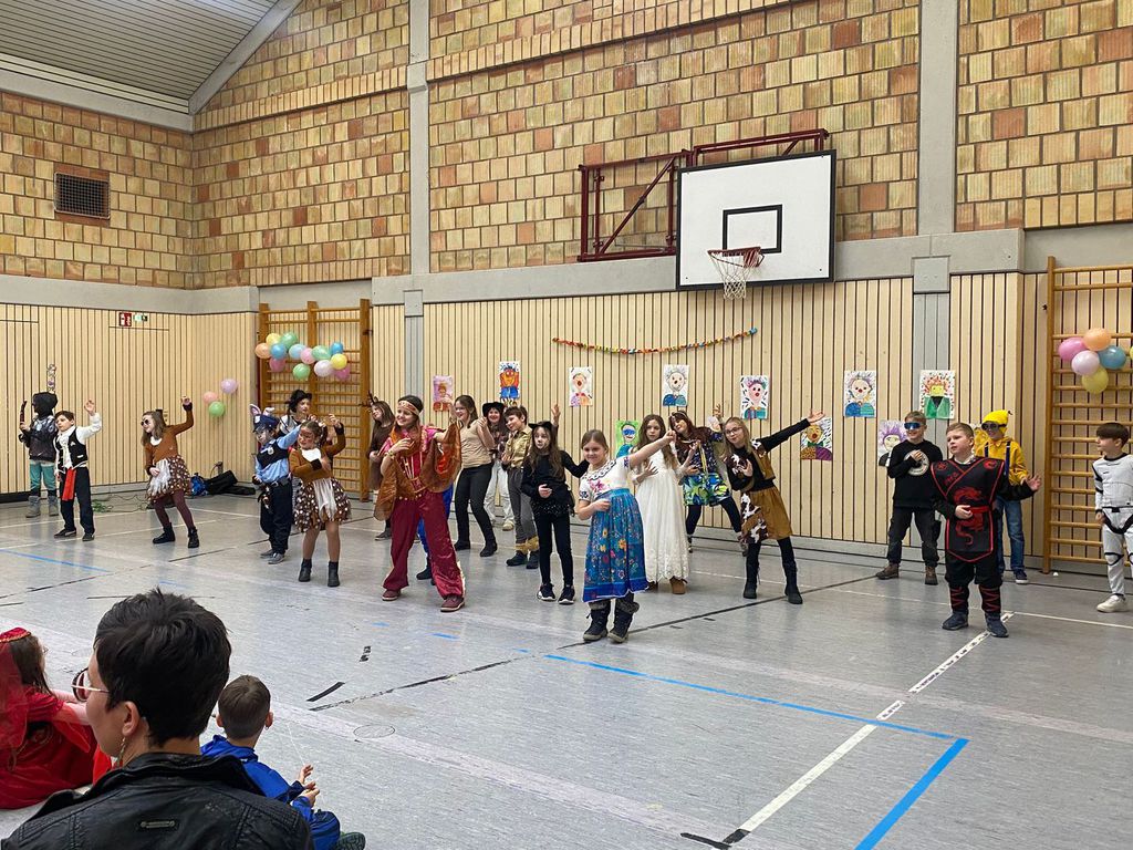 Schlauhause Helau! Laut schallte der Ruf durch die Grenderichhalle - denn am Dicken Donnerstag war es endlich wieder soweit - unsere Faschingsparty startete! Die Kinder und LehrerInnen waren alle toll verkleidet und kamen nach dem bunten Klassenfrühstück gestärkt mit einer langen Polonäse in die Halle.