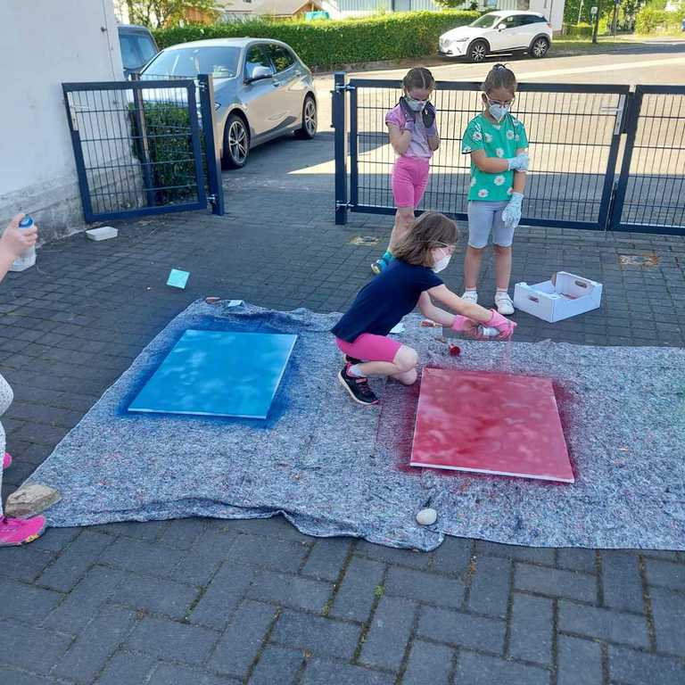 Sprühfarbe kreativ besprayten. Besonders das Sprayen mit Schutzbrillen,